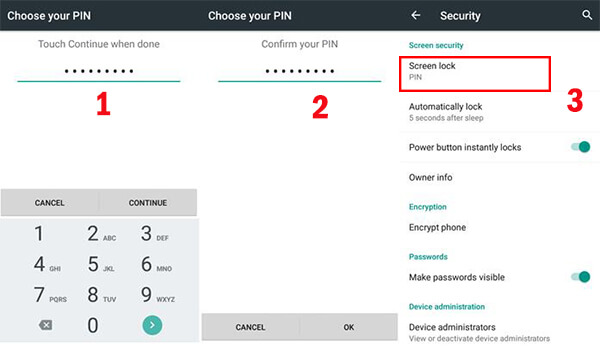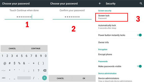 第 1 步:转到设置轻敲屏幕锁定和密码选择密码。然后逐步设置屏幕锁定密码(普通密码/PIN/图案)。
