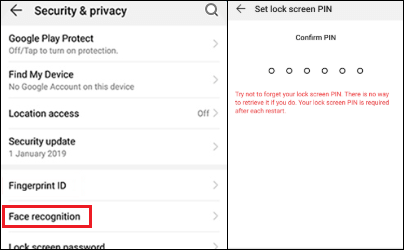 步骤一:打开设置安全隐私并点击人脸识别。然后,输入您的屏幕解锁密码。