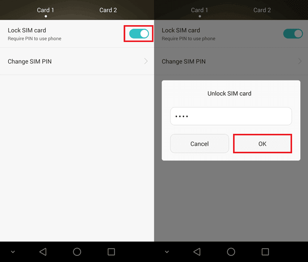 如果您想禁用卡锁,请关闭锁定SIM卡并在弹出窗口中输入您设置的 PIN解锁SIM卡对话。轻敲好的并且SIM卡已解锁。