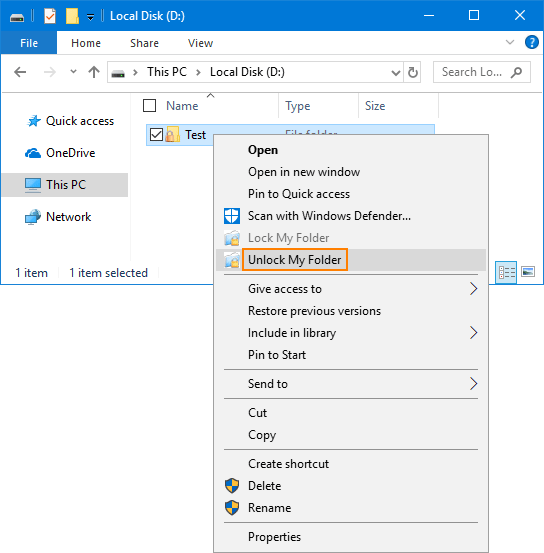如果您想暂时阻止其他人访问您的安全文件夹,只需右键单击它并选择“锁定我的文件夹从上下文菜单中删除它并使其不可访问。每次重新启动或关闭计算机时,安全文件夹也会自动锁定。