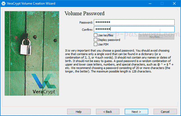 - 输入稍后用于安装此虚拟磁盘映像的卷密码。