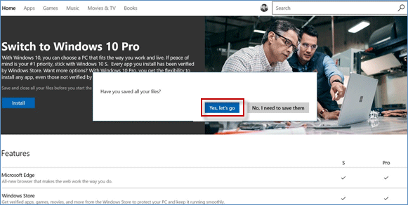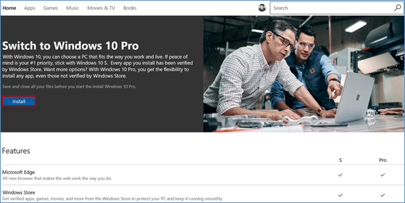 方式一:如何通过 Microsoft Store 从 Windows 10 S 切换到 Windows 10 Pro