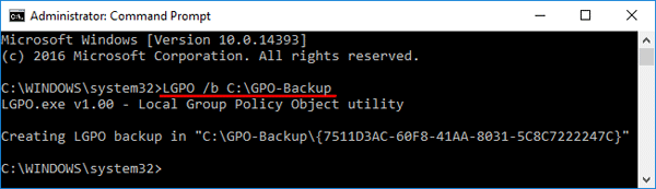 要在本地 PC 上创建本地策略策略设置的备份,请在命令提示符下运行以下命令: