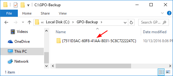 目标目录中将出现一个带有 GPO GUID 的新文件夹。它将包含该计算机的所有本地策略设置。您可以在需要时随时将此备份恢复到本地计算机,或稍后将其导入到另一台计算机。