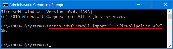 netsh advfirewall import "C:\firwallpolicy.wfw"