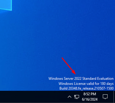 在右角和宽限期到期前的剩余几天中找到Windows Server版本。