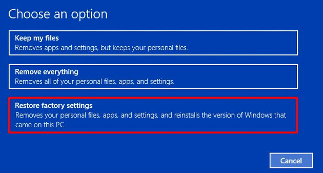 选项 2:在不登录的情况下将华硕 Windows 10 笔记本电脑恢复出厂设置