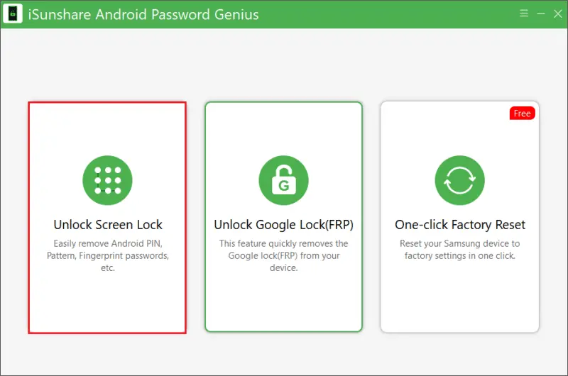 iSunshare Android 密码天才是一款智能一站式解锁工具,不仅支持无密码解锁和恢复出厂设置,还可以绕过FRP锁定问题。让我们看看它是如何工作的。