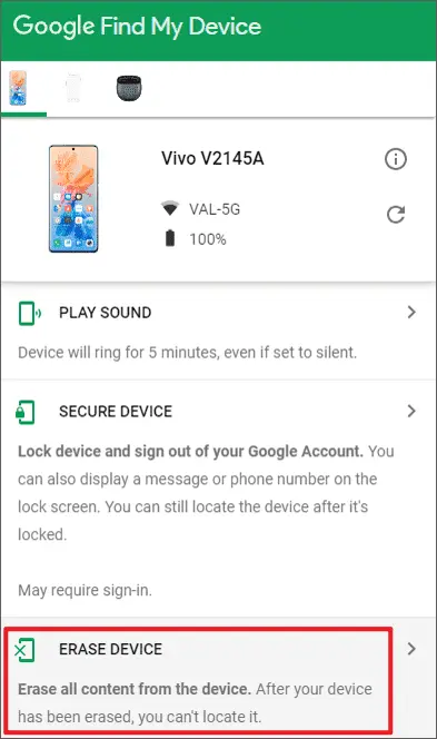 选项 1:使用“查找我的设备”擦除 Vivo 手机