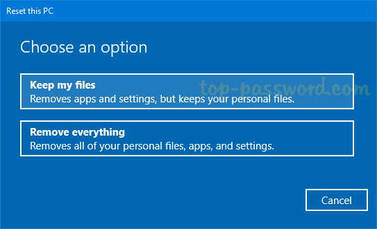 - 保留我的文件 - 此选项将删除所有应用程序和设置,但请保持您的个人文件完整。