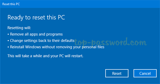最后一步是单击重置。然后,您的PC将自动重新启动,并开始出厂重置过程。