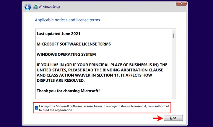 步骤7接受 Microsoft 软件许可证,然后单击下一个。