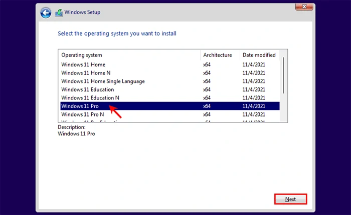 步骤6选择您的 Windows 11 版本并单击下一个。