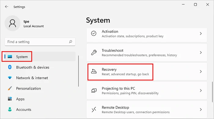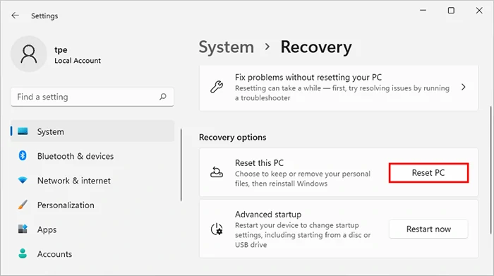 如果您可以以管理员帐户身份登录 Windows 11,则只需从“设置”菜单重置您的电脑即可。