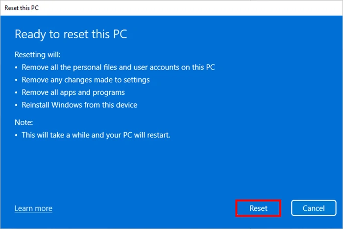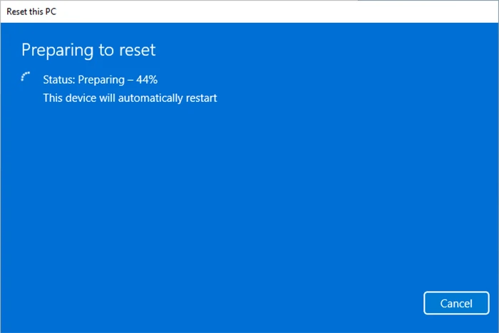 步骤8您的电脑将立即开始重置为出厂设置。只需保持电脑开启并等待重置完成即可。