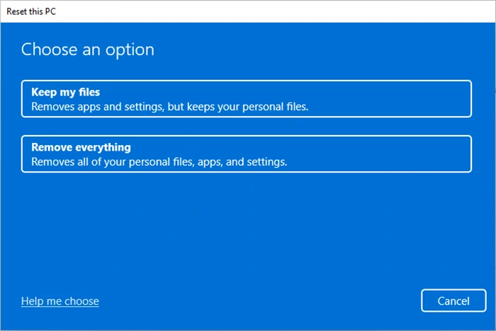 步骤4根据您的需要选择“保留我的文件”或“删除所有内容”。由于您没有管理员密码,因此您需要选择“删除所有内容”。否则,如果您选择保留我的文件,您仍然需要在重置结束时输入 Windows 11 管理员密码。