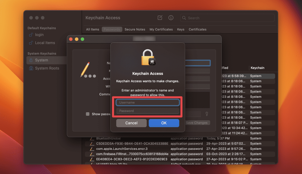 - 系统可能会提示您输入 Mac 的用户名和密码。