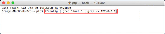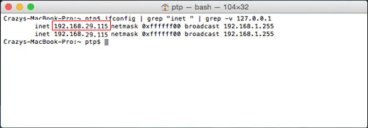 ifconfig | grep“inet”| grep -v 127.0.0.1