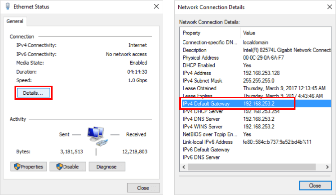 这路由器的IP地址显示在右侧默认网关在您正在使用的网络连接下。