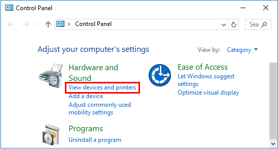 第 2 步:点击查看设备和打印机在下面硬件与设备。