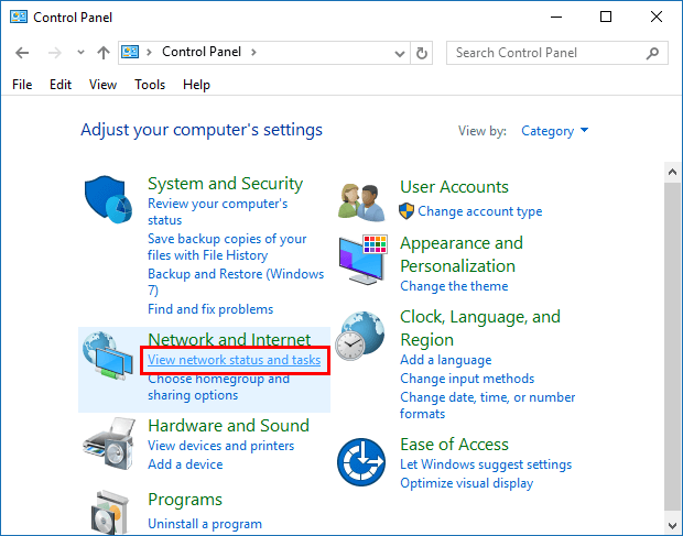 第 2 步:点击查看网络状态和任务链接下的网络与共享中心。