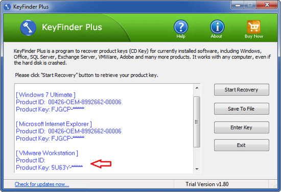 使用 KeyFinder Plus,您可以找到所有版本的 VMware Workstation 丢失的许可证密钥(产品密钥),包括 VMware Workstation 6、7、8、9 和 10。以下是如何通过几个简单的步骤恢复 VMware 产品密钥。