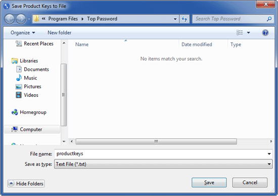 - 恢复产品密钥后,单击保存到文件按钮,您将看到一个保存文件对话框,该对话框允许您将产品密钥导出到文本文件。