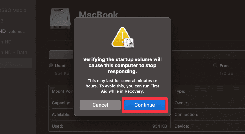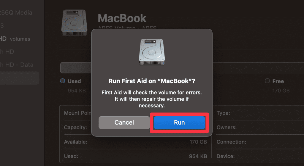 - 磁盘工具将扫描您的磁盘是否有错误并修复它找到的任何权限。