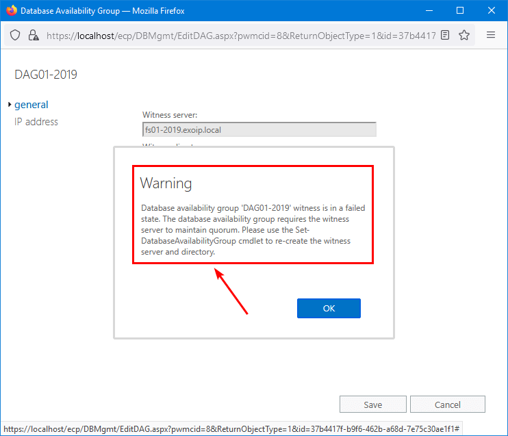 File Share Witness (\fs01-2019.exoip.localDAG01-2019.exoip.local) Online Cluster Group File Share Witness