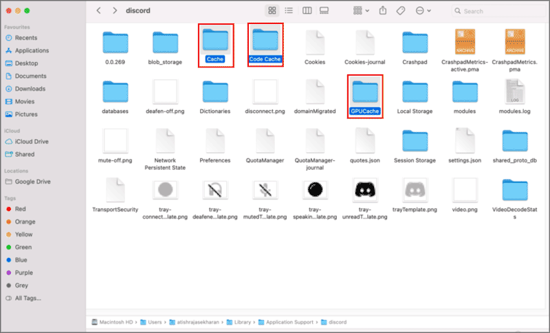 步骤3:您将进入Discord目录,选择“Cache”、“Code Cache”和“GPUCache”文件夹;