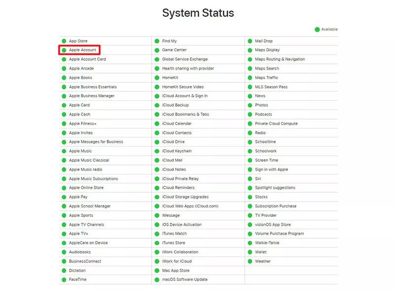2. 检查是否有任何 Apple 服务(例如 iCloud 或 Apple ID 服务)出现中断。