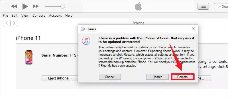 如果您已尝试上述所有方法,但“验证失败”错误仍然存在,则通过 iTunes 抹掉您的 iPhone 可能是解决方案。此方法绕过许多设备内进程,这有助于避免验证问题。