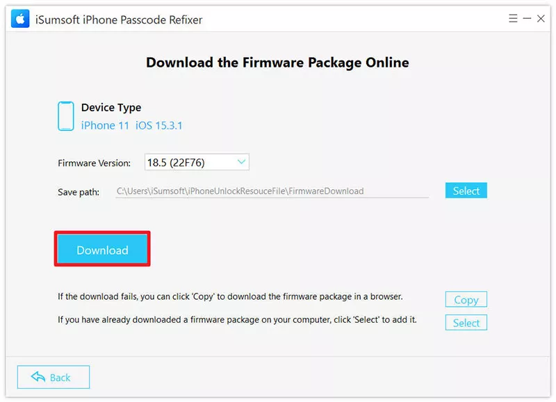 7. 单击“下载”下载修复 iPhone 所需的固件包。
