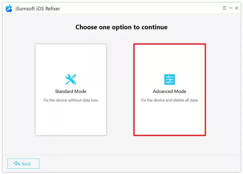 4.选择高级模式(此选项深度修复iOS并擦除iPhone并将其恢复为出厂设置。)