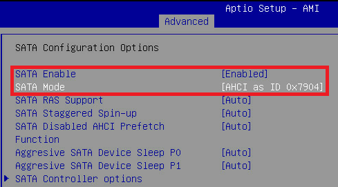 - 找到 SATA 控制器设置并检查其是否设置为“启用”。