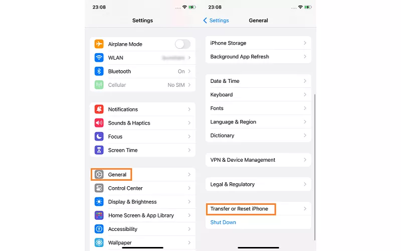 步骤一:轻敲设置>一般的>转移或重置 iPhone。