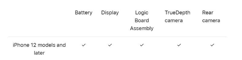 此外,如果您之前曾将 iPhone 12 或更新机型送去进行非官方维修,请转至设置 > 常规 > 关于,并检查零件和服务历史确认您的相机或 Face ID 模块是否为正品。