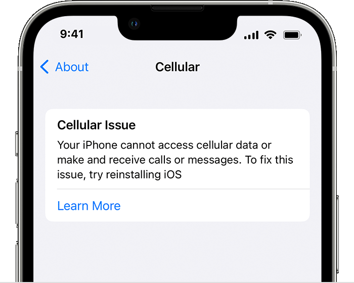 如果您看到“蜂窝网络问题”消息,则您将无法访问蜂窝数据,也无法拨打或接听电话和短信。