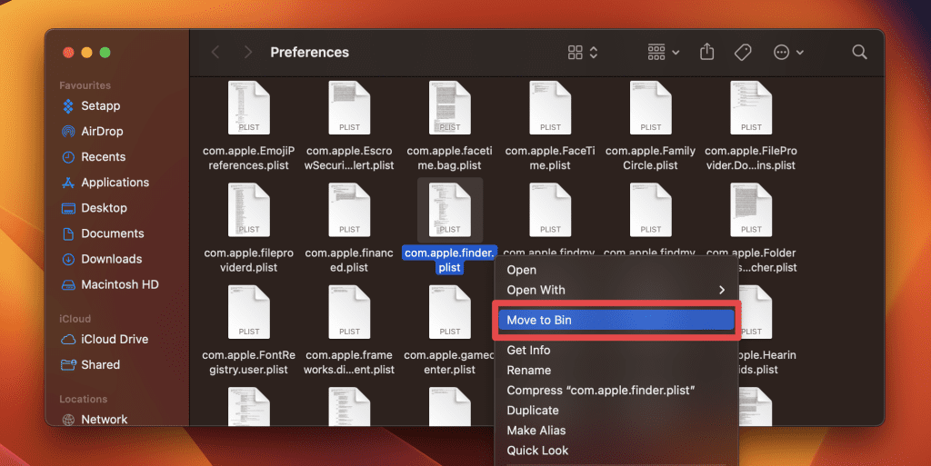 - 删除首选项文件后,重新启动 Finder 或 Mac 以应用更改。