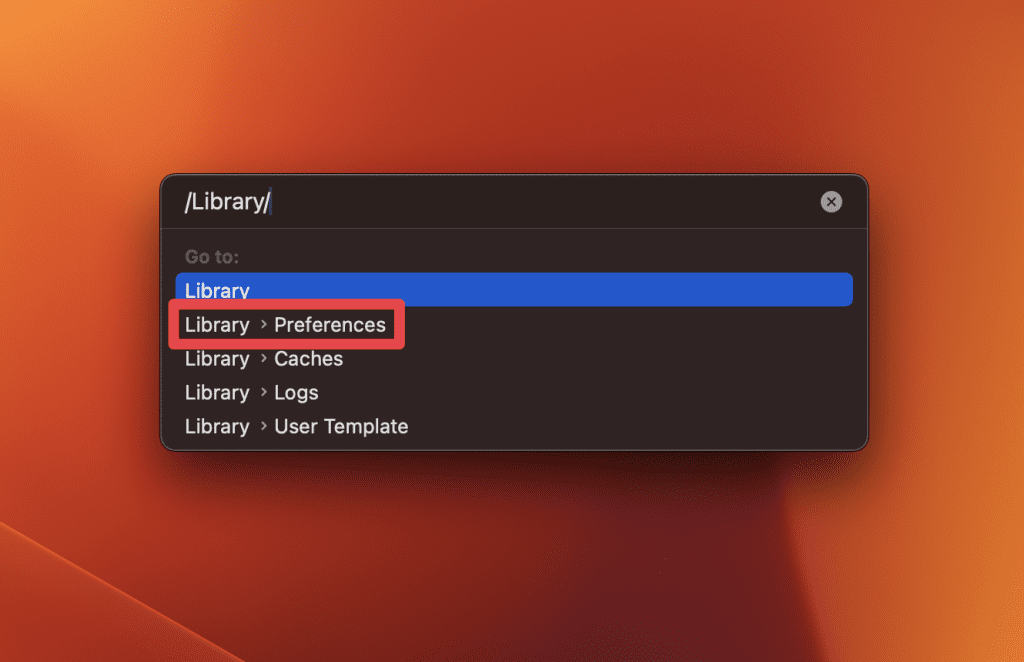 - 在库文件夹中,导航到偏好设置子文件夹。