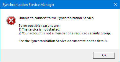 当我们启动Microsoft Entra Connect同步服务管理器时,它显示以下错误: