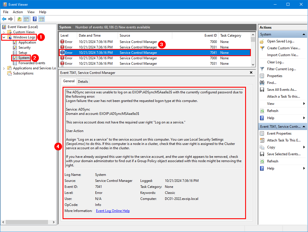 由于以下错误,ADSYNC服务无法使用当前配置的密码登录为ExoipadSyncmsaaa9a3 $: