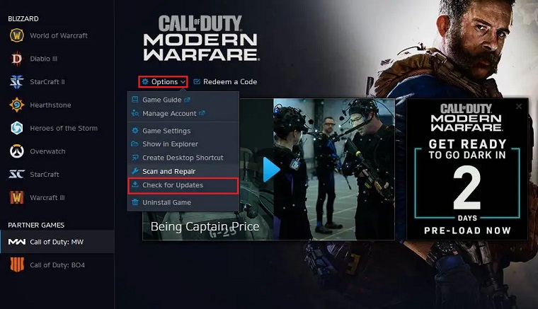有可能更新现代战争可以解决CPU使用率高的问题。它还可以解决任何其他潜在的错误和问题,因此最好保持游戏更新。对于大多数用户来说,官方更新尚未解决此问题,但值得一试。要检查适用于《现代战争》的更新,请按照以下简短说明操作: