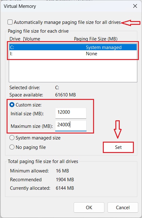 为安装 COD MW 的驱动器设置自定义虚拟内存大小