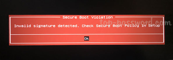 “安全引导违规。检测到无效的签名。在设置中检查安全引导策略”