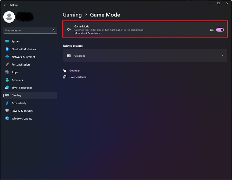 - 现在,切换开关以打开游戏模式。