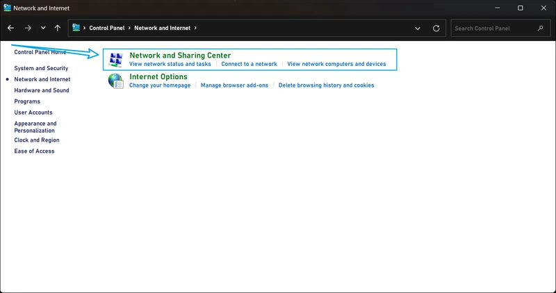 步骤2单击网络和共享中心,然后从左侧菜单中选择“更改适配器设置”。