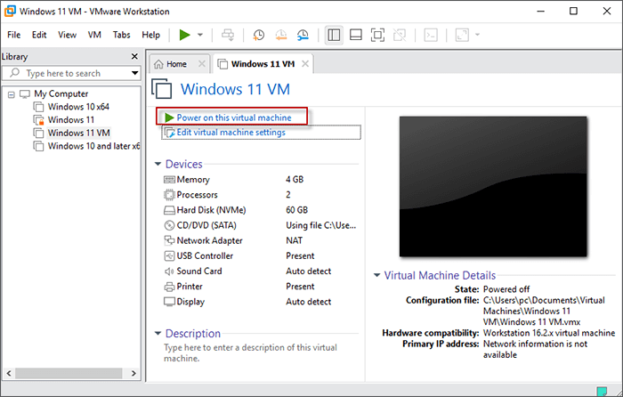 步骤4点击打开该虚拟机的电源这次您可以在 VMware Workstation 上启动虚拟操作系统而不会出现 EFI 网络超时。
