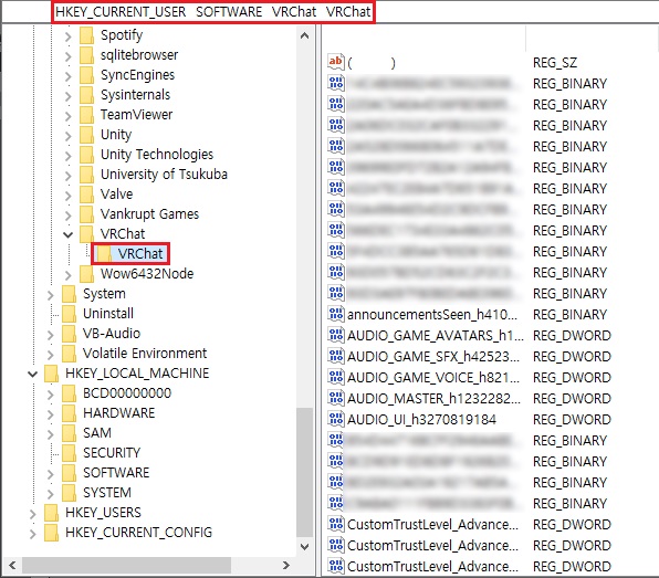 - 在这里沿着路径hkey_current_user>软件> vrchat。