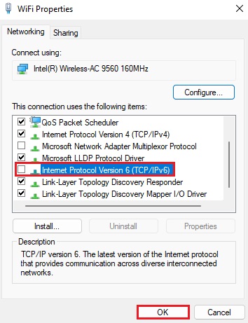 另一个测试解决方案是禁用IPv6。它可以修复Vrchat Avatar不加载错误,因为有时会导致游戏与Internet的连接问题。IPv6是新的形式IPv4计算机用来通过Internet进行通信的Internet协议。禁用IPv6将防止Vrchat通过IPv6并在此解决加载问题。